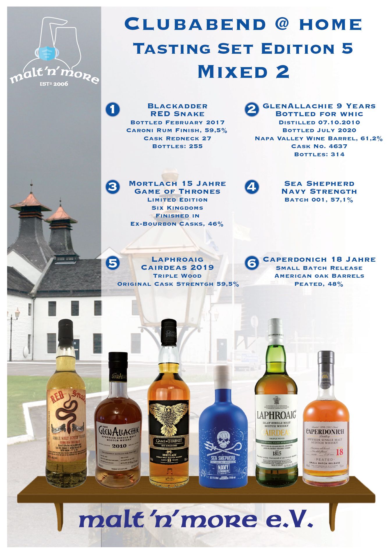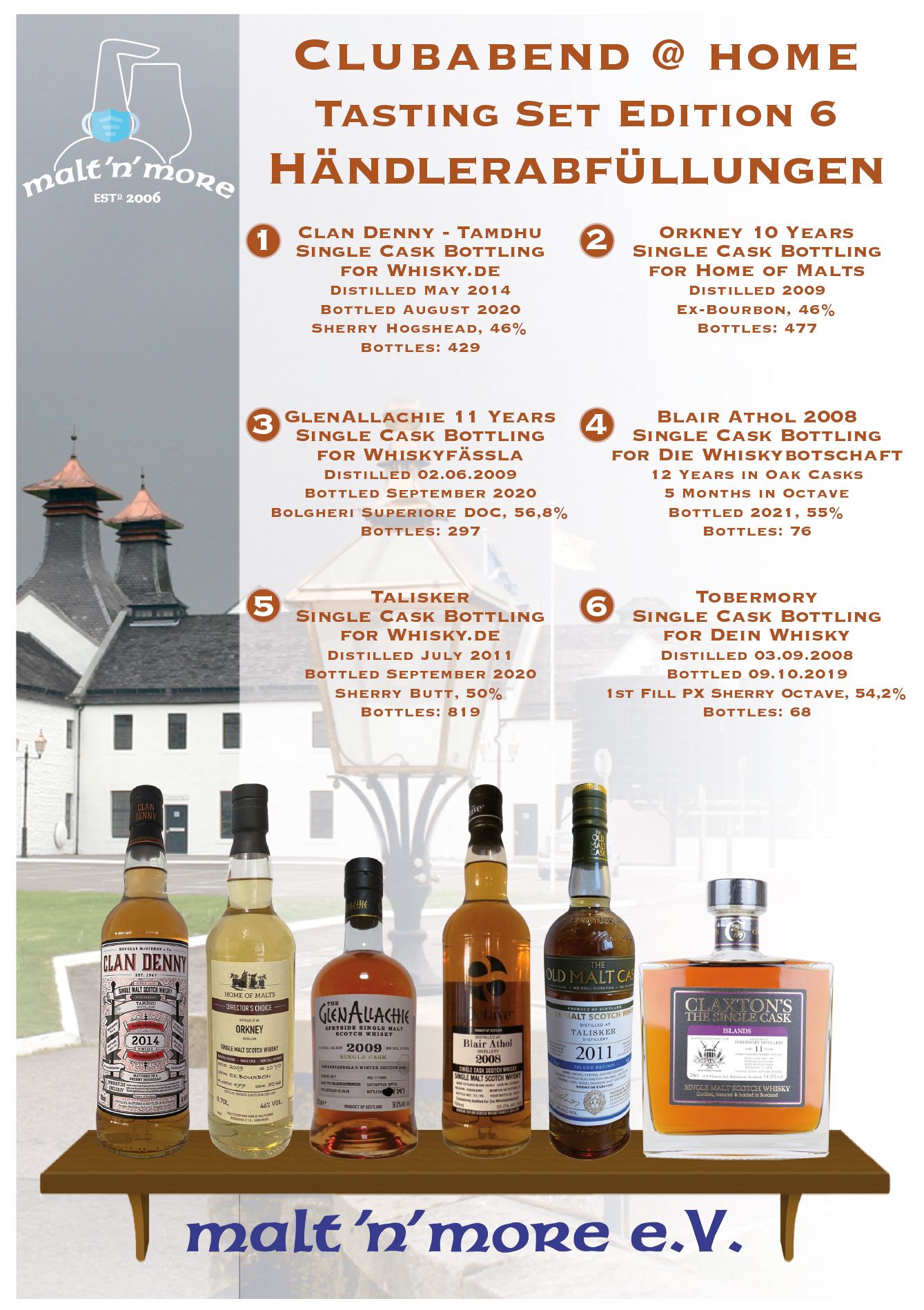 nach dem riesigen Erfolg im letzten Jahr gibt's wieder neue Tasting-Sets "Club-Abend@home". Die Tasting-Sets stehen wieder unter einem bestimmten Thema und enthalten je 6 Whiskys zu je 4 cl. Diesmal haben wir 2 Sets zusammen gestellt, die enthaltenen Whiskys seht ihr in den unten angefügten Beipackzetteln.